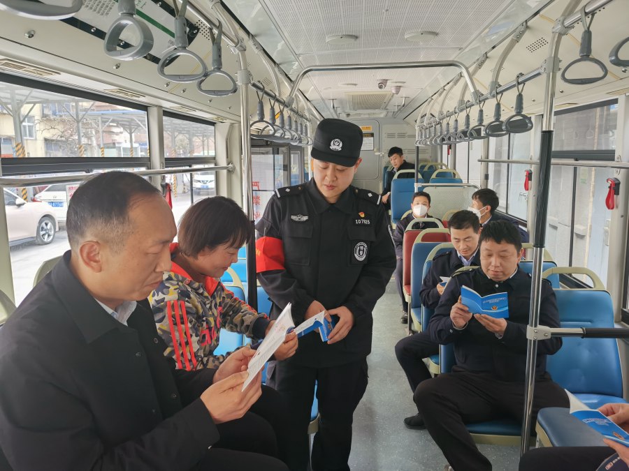 2023年3月,志愿者为公交乘客普及反诈知识。 记者 李焱 图