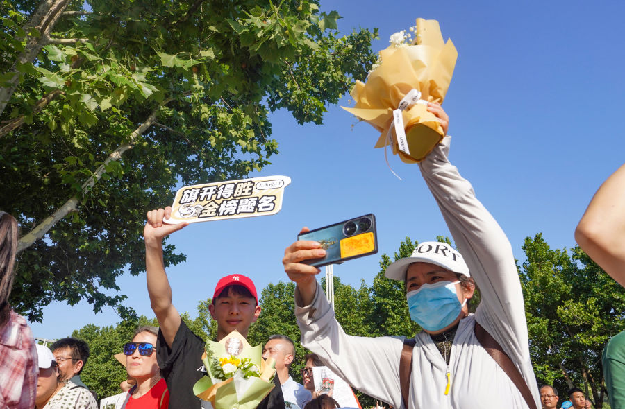 家长用鲜花和拥抱迎接考生。 正观新闻记者 马健/图