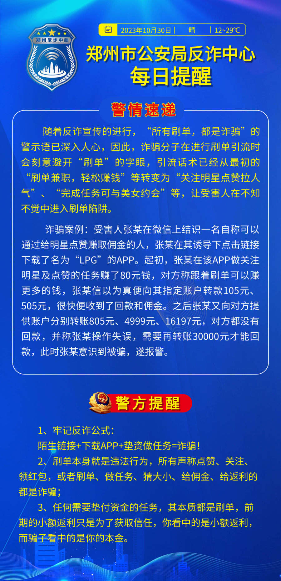 郑州市公安局反诈中心每日提醒