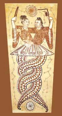 《帝王世纪》:“庖牺氏……蛇身人首。”“女娲氏……亦蛇身人首。”(《艺文类聚》卷二引)