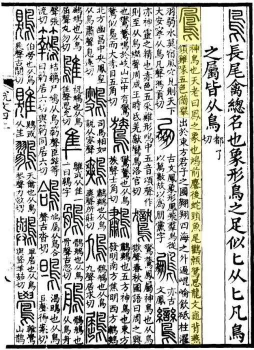 ▲东汉许慎著《说文解字》卷四鸟部记载,“凤,神鸟也”“凤之象也,鸿前麐後,蛇颈鱼尾,鹳颡鸳思(腮),龙文虎背,燕颔鸡喙,五色备举。”中国书店,1989年出版。