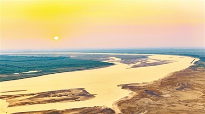 夕阳为黄河水镀上金色光芒,诉说着新时代的黄河故事。 马健 摄