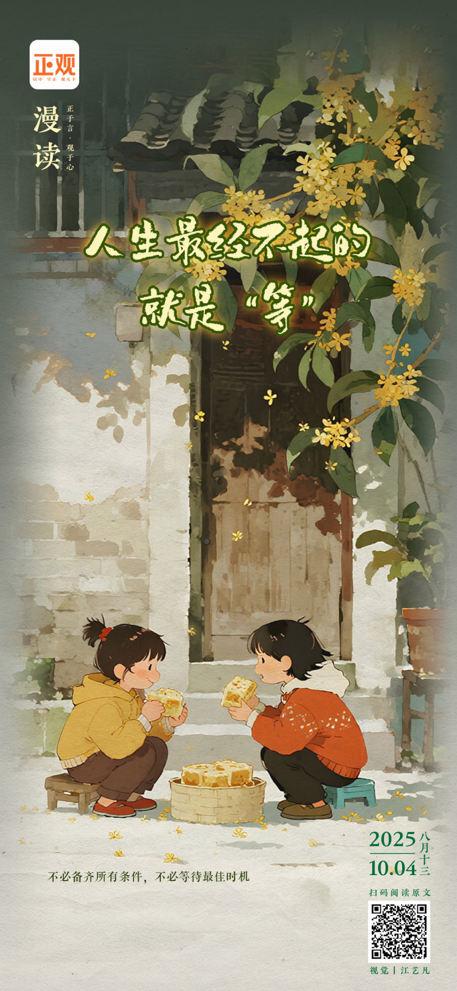 细想起来,“等”其实藏在我们太多日常里:等忙完这阵子就陪父母好好吃顿饭,等手头的事告一段落就约老朋友见一面,等天气再好些就去赴那场搁置了半年的旅行,甚至等心情再明朗点,才肯对在意的人说句软话。