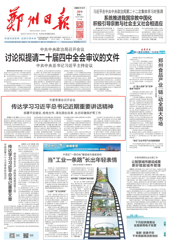 9月29日,市委常委会召开会议,传达学习习近平总书记近期重要讲话、重要指示和重要文章,研究我市贯彻落实意见,部署平安建设、校地合作、深化国企改革、生态环境保护等工作。