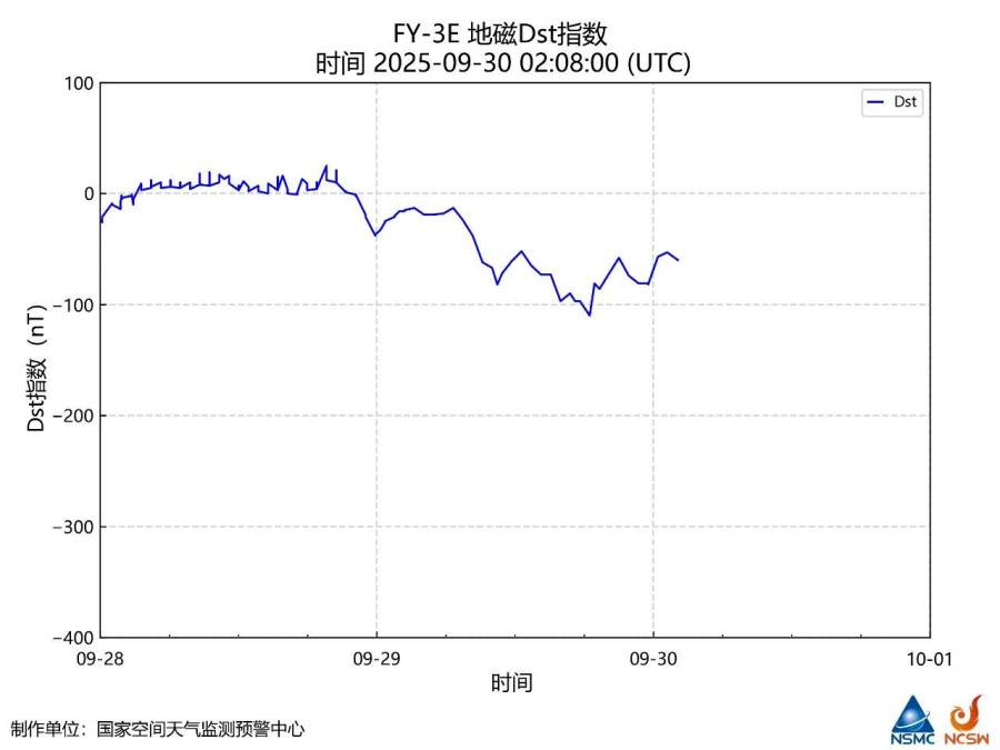 风云三号E星的天基地磁探测数据显示,中低纬度区域的Dst指数一度下探到超过-100nT。