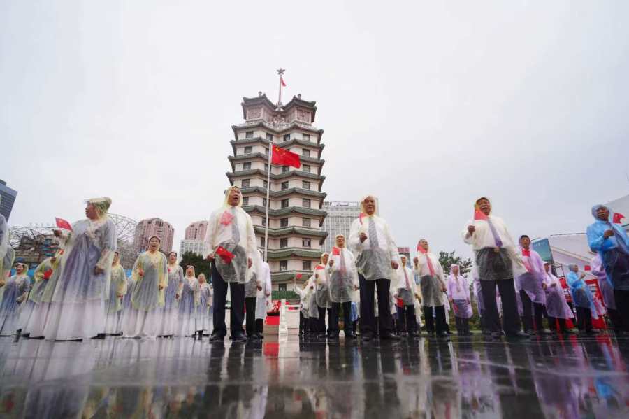 歌声渐息,热情未减。细雨中,那抹高扬的红色之下,是无数道炽热的目光与不变的坚定信念。一份深沉的家国情怀,在此刻定格,汇聚成对盛世华夏最真挚的礼赞。