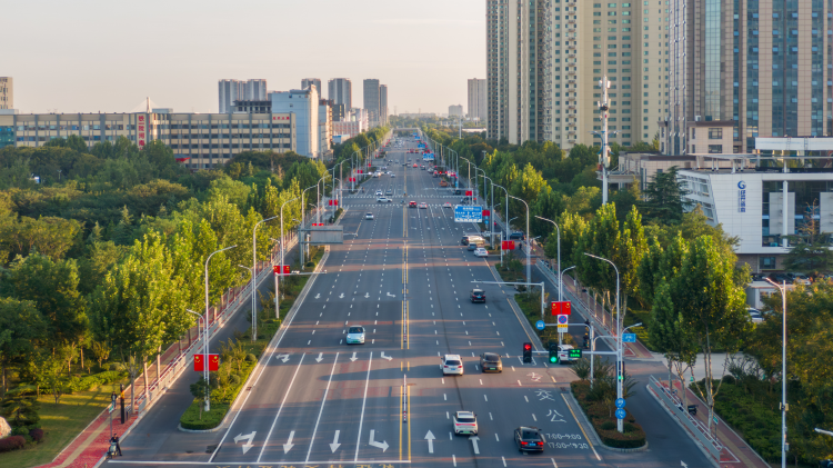 千面国旗沿着中州大道绵延开来,宛如赤色绸缎铺展城市动脉。