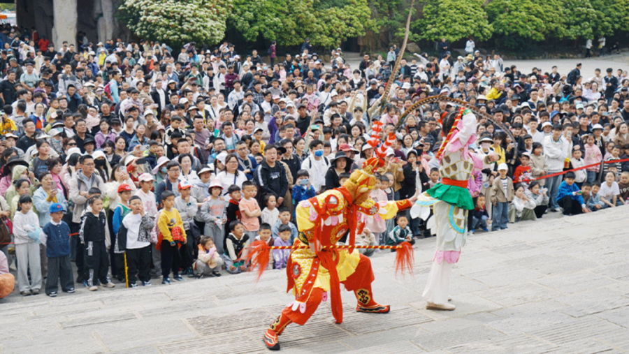 欣赏锦狮贺禧、川剧变脸等传统表演
