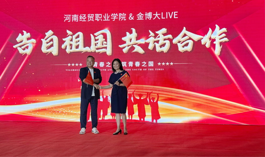 这场国庆快闪活动,不仅是一次沉浸式的爱国教育实践,更标志着河南经贸职业学院与金博大Live校企合作的正式启航。活动现场,河南经贸职业学院校长成光琳动情致辞。她说,作为国家级“双高计划”建设单位,学校始终以培养“有理想、有本领、有担当”的新时代技能人才为己任。此次与金博大Live携手,是学校深化产教融合、推动教育链与产业链精准对接的关键一步。未来,学校将充分借助金博大Live的商业平台与场景优势,为学生搭建从实习实训到创意实践、再到就业创业的“全链条实战舞台”,让专业知识在真实场景中落地生根。