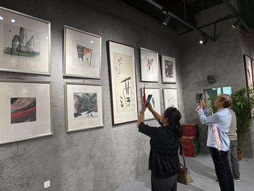 展厅里,七十余幅水墨精品,随着雨丝轻敲窗棂更显灵韵。《笼中鸟》以寥寥笔墨间禽鸟灵动,尽释传统文人画的空灵禅意;《红河谷》借浓烈红韵铺展,小舟人物映着雨雾般的朦胧,将自然与人文的诗意揉进现代艺术张力。观众漫步其中,不禁感慨“画里藏着心底对自由与成长的叩问”,叹服“先生墨色把控间的巧思,是传统水墨与现代表达的温柔相撞”。