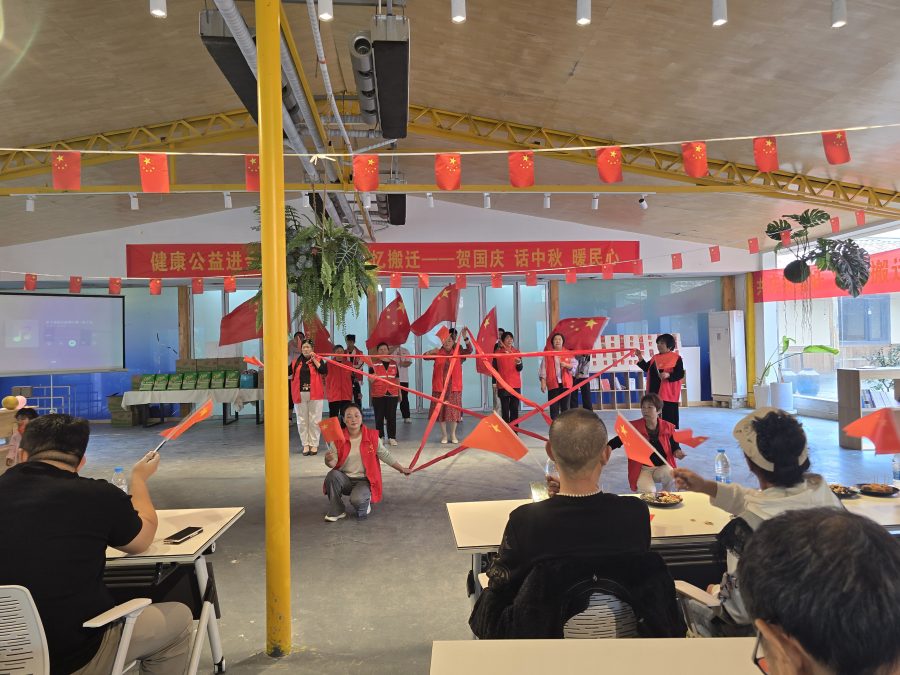 10月1日,中牟新区官渡镇金源社区生态园服务中心内,一场以“健康公益进金源·双节同庆忆搬迁——贺国庆、话中秋、暖民心”为主题的庆祝活动在这里举行。此次活动旨在弘扬爱国主义精神,传承中秋传统文化,同时展示金源社区移民搬迁14年来的发展成果。