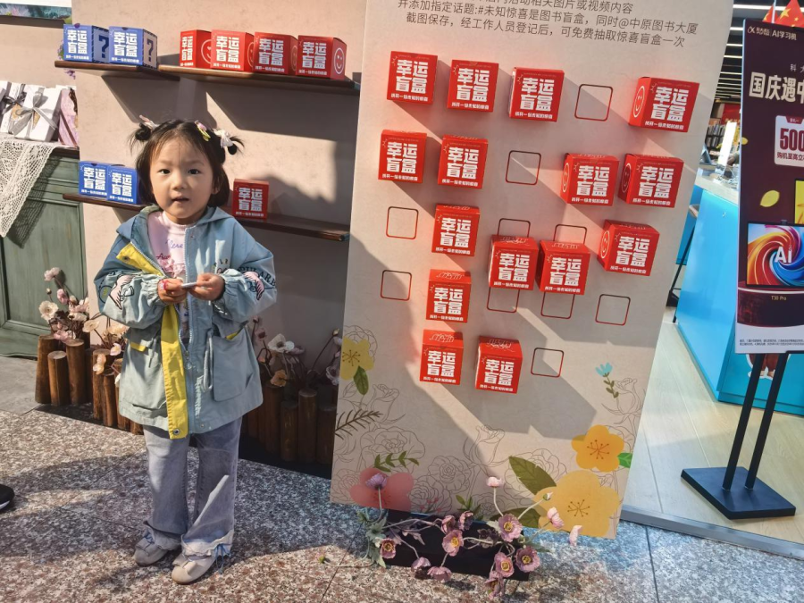 方寸书页藏九州风华,一纸墨香颂祖国华诞。中原图书大厦以创新的打卡体验,解锁独特的纪念方式。来新华书店,定格与祖国的美好瞬间,祝祖国母亲生日快乐~读者可在“国庆特刊报纸自拍打卡区”拍照留念,将阅读与爱国情感巧妙联结,记录与书香为伴的假期时光。