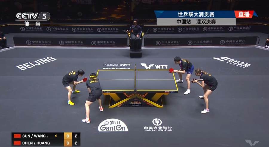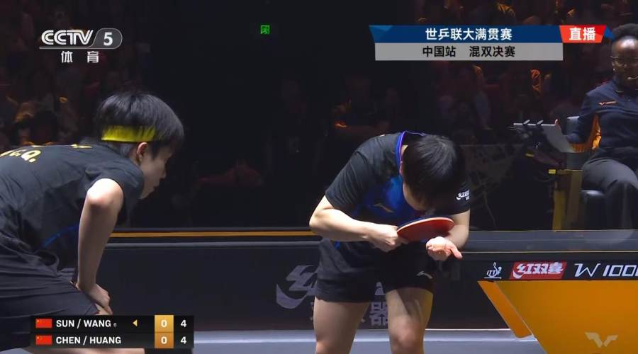 第二局比赛中,王楚钦/孙颖莎11比9领先黄友政/陈熠再下一局,将比分优势扩大到2-0。