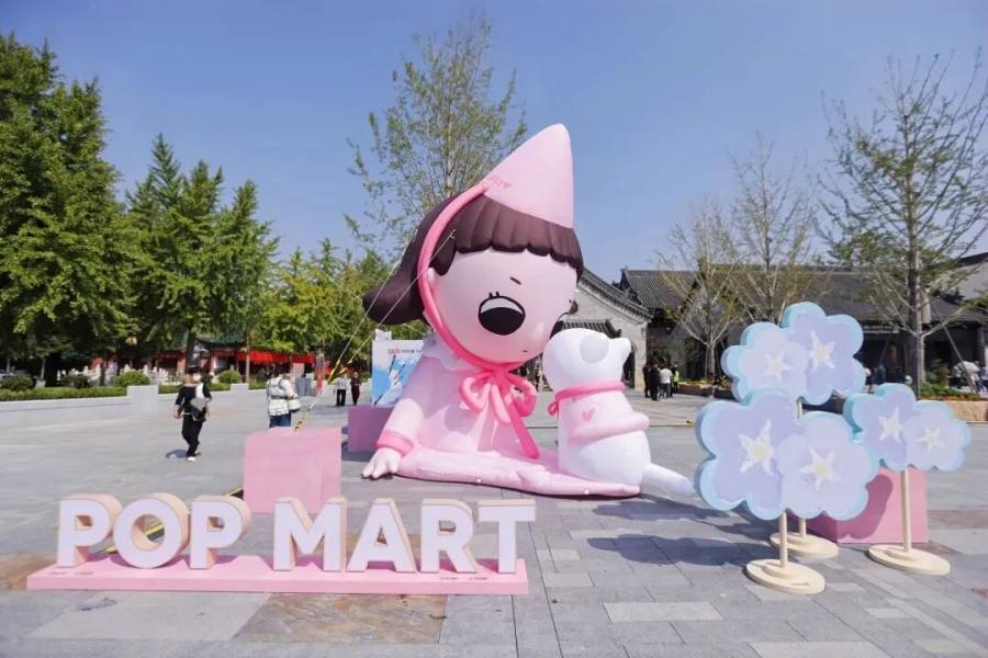 在河南郑州具有3600年历史的商代城墙一侧,泡泡玛特人气IP“Nyota”的四季主题展览吸引了众多年轻人拍照打卡。