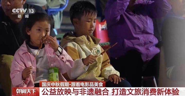 国庆中秋假期,在辽宁省铁岭调兵山市,当地举办露天电影与非遗美食相结合的系列活动,打造独特的文旅消费体验。
