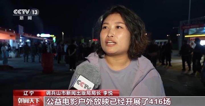 调兵山市新闻出版局局长 李悦:今年到现在为止,我们公益电影户外放映已经开展了416场,在咱们夜市开展了10场。我们也要凭借咱们十一假期的热乎劲儿持续开展户外电影放映。