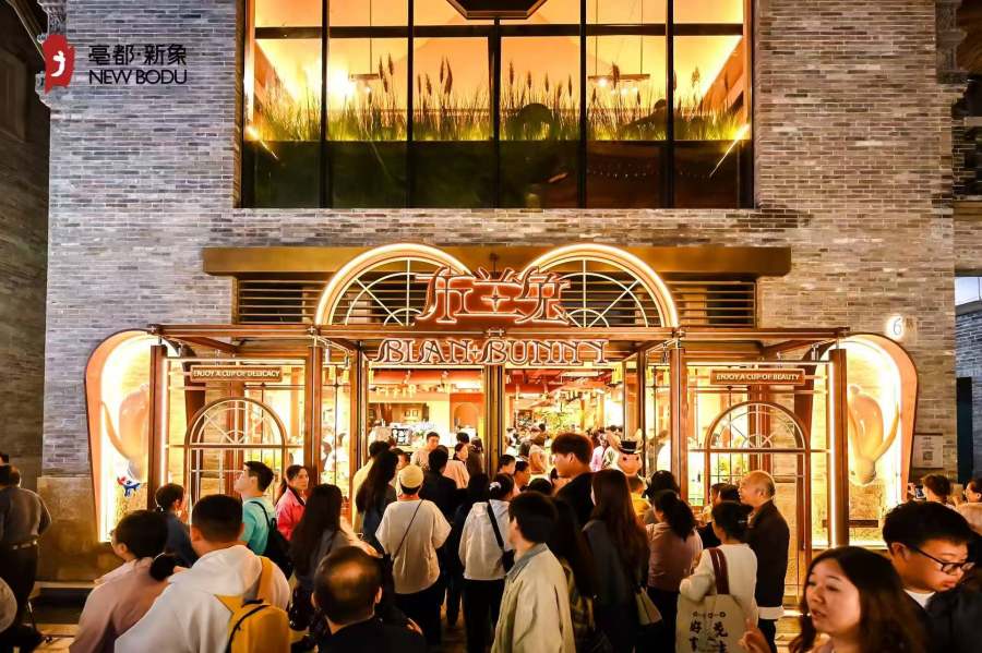 从咖啡的醇香中抽身,潮流气息便漫溢开来。华人青年、Crying Center、暗涌、F426等潮牌店内,时尚爱好者精心挑选心仪单品;名创优品城市IP主题旗舰店、朱炳仁·铜中原铜屋和BLACKHEAD潮流配饰店,提供丰富多元的消费选择;眷茶、麦陌门前,顾客有序等候的身影成为风景;主打英伦复古风的布兰兔,把新款产品糯香栗味红茶卖成了人气爆款……