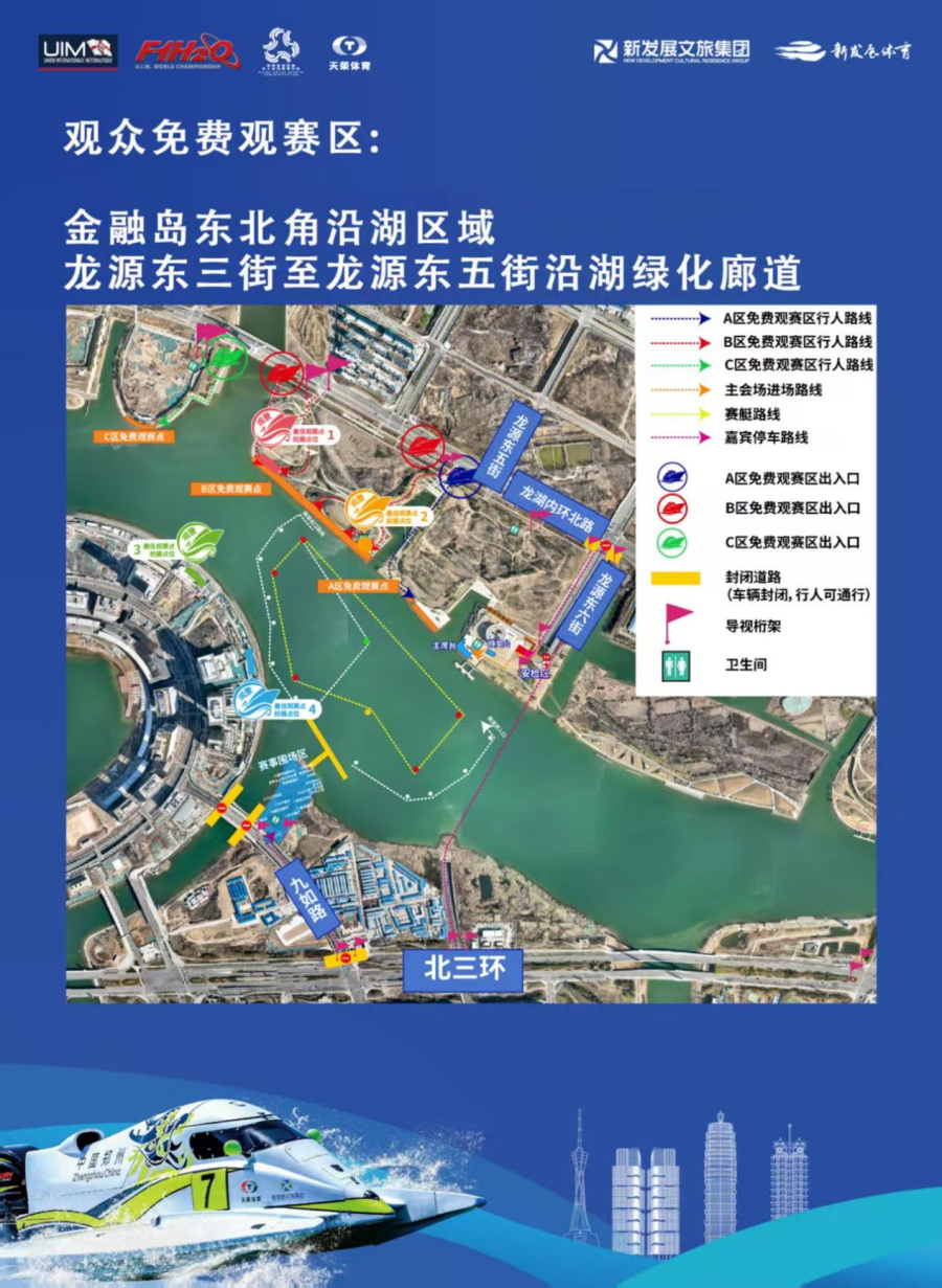 ①A、B、C免费观赛区:龙源东三街至龙源东五街沿湖绿化廊道。