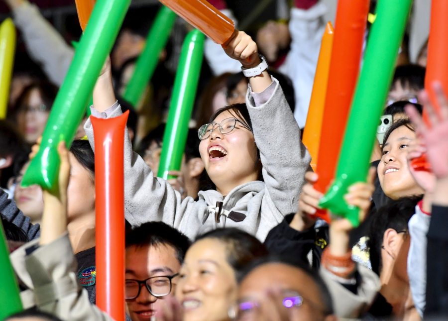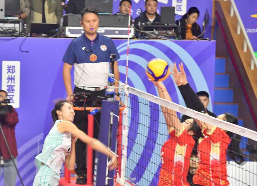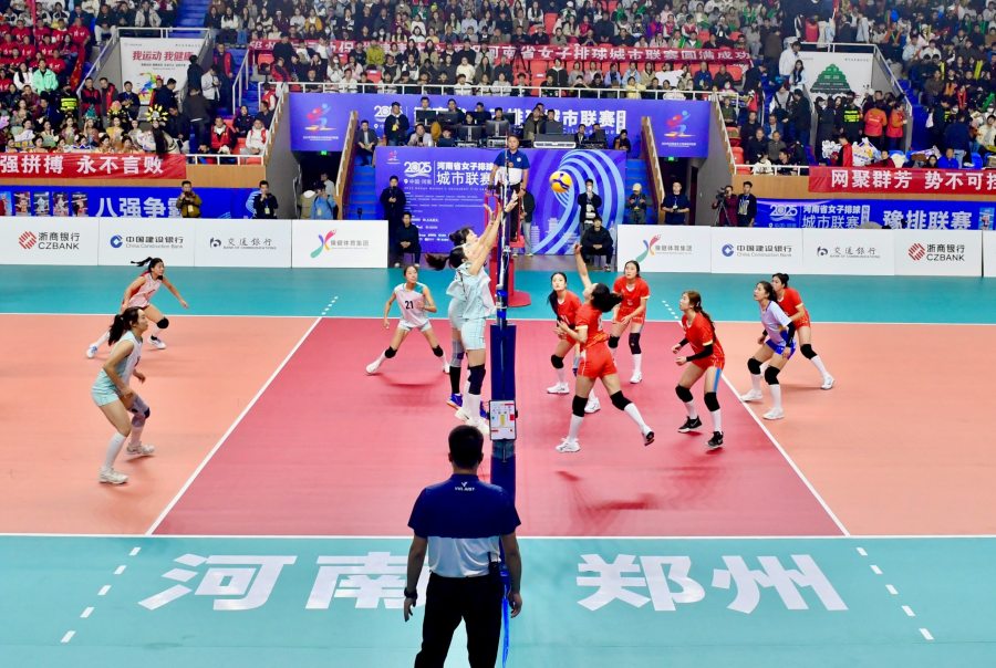 2025年河南省女子排球城市联赛第二阶段的比赛,10月10日晚在郑州、商丘、周口、开封四地同时开赛。场外双方啦啦队极富当地特色的歌舞表演、场内双方队员精彩激烈的对抗、看台上观众不遗余力地呐喊助威,联袂制造出新一波排球热潮。当晚主场作战的郑州队,以3∶0战胜洛阳队,拿下这场强强对话。