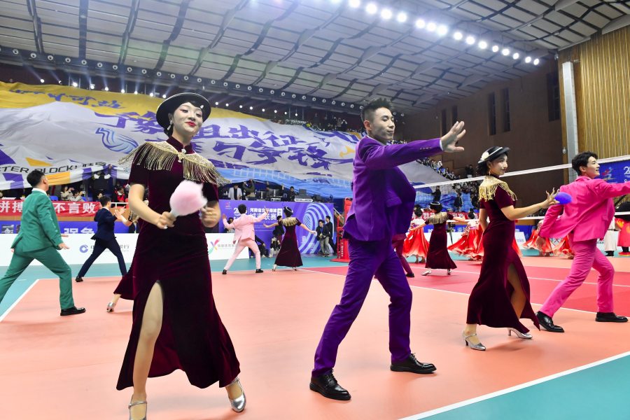 距离比赛开赛还有半个小时,郑州市体育馆内已经是座无虚席,场面火爆。而两队啦啦队的表演也堪称“冠军级别”。远道而来的“唐宫小姐姐”们身着汉服款款出场,婀娜娇艳;而郑州的啦啦队则是西装礼服,利落洒脱。双方不同风格的隔网“斗舞”,将现场温度推到沸点。