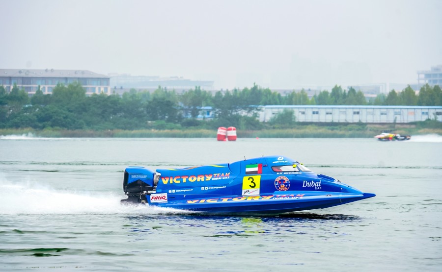 中国天荣F1H2O摩托艇队的彼得·莫林在比赛第一圈就跑出了46秒56的单圈最好成绩,展现出了良好的竞技状态。进行到第九圈,沙迦队的斯特凡·阿兰德突然发力,以46秒02的成绩刷新了最快圈速,超越了莫林。