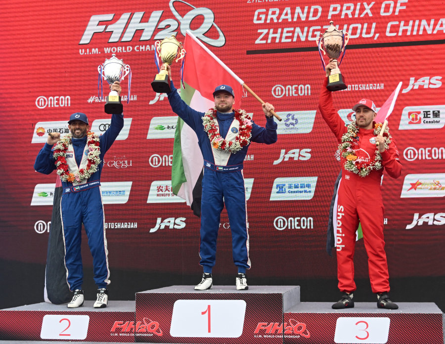 鲜花、奖杯、桂冠……10月12日,在欢呼声中,2025年F1H2O郑州大奖赛正式落下帷幕。来自维多利队的两位赛手亚力克·威克斯特罗姆、肖恩·多仁特包揽本站冠、亚军,沙迦队的鲁斯狄·怀亚特获得季军。凭借优秀的组织办赛能力,郑州市获得了国际摩托艇联合会颁发的“优秀办赛城市”荣誉铭牌。