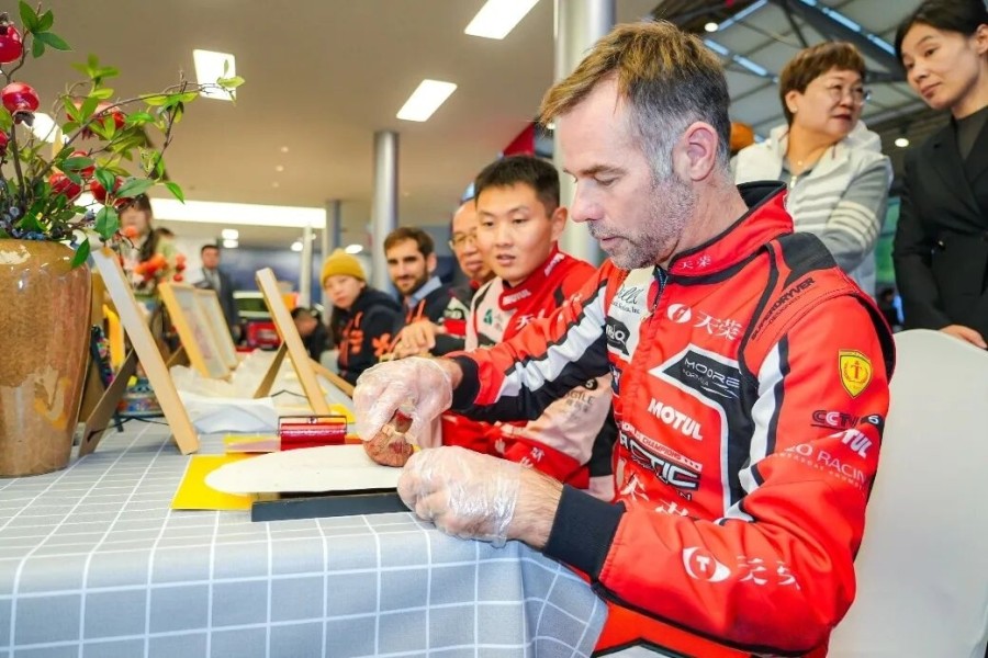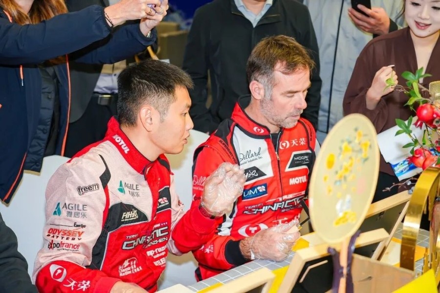 交流不止游船,非遗同样惹人喜爱。10月9日,在2025年世界F1H2O摩托艇大赛中国天荣F1H2O摩托艇队粉丝见面会上,来自洛阳的非遗拓印不仅让传统文化走入赛事,还让朱红墨汁点染选手指尖。