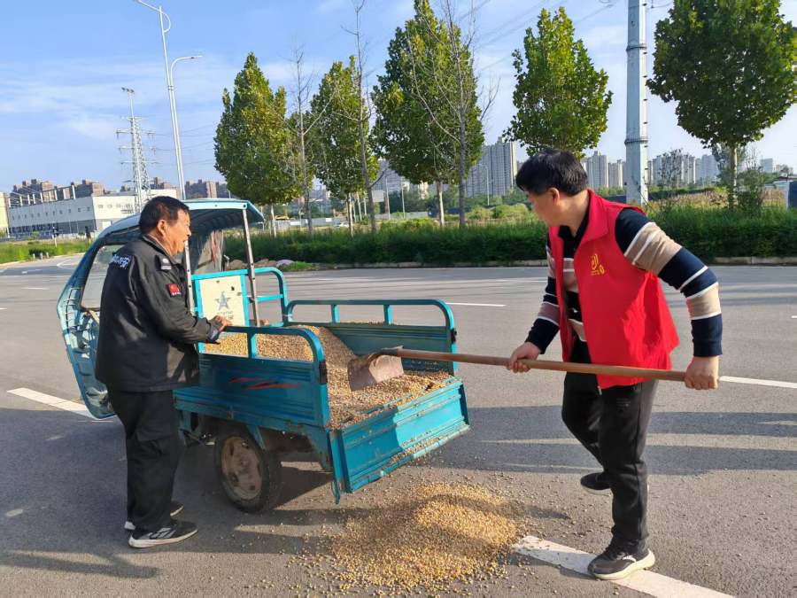安全是晾晒工作的生命线。街道构建起“党工委统筹、社区(村)落实、党员志愿参与”的三级联动保障机制,组织街道干部、社区工作人员及志愿者下沉一线,实行分片包干、动态巡查,及时引导农户在划定区域规范晾晒,坚决杜绝占用主干道、靠近电力设施等安全隐患。同时,通过社区广播、居民微信群、现场讲解等多种形式,广泛宣传防火、防霉变、及时收储等安全知识。各晒粮区均配备了灭火器材,并建立起“10分钟应急响应圈”,全天候排查化解各类风险,真正做到“便民不扰民,晒粮保平安”。