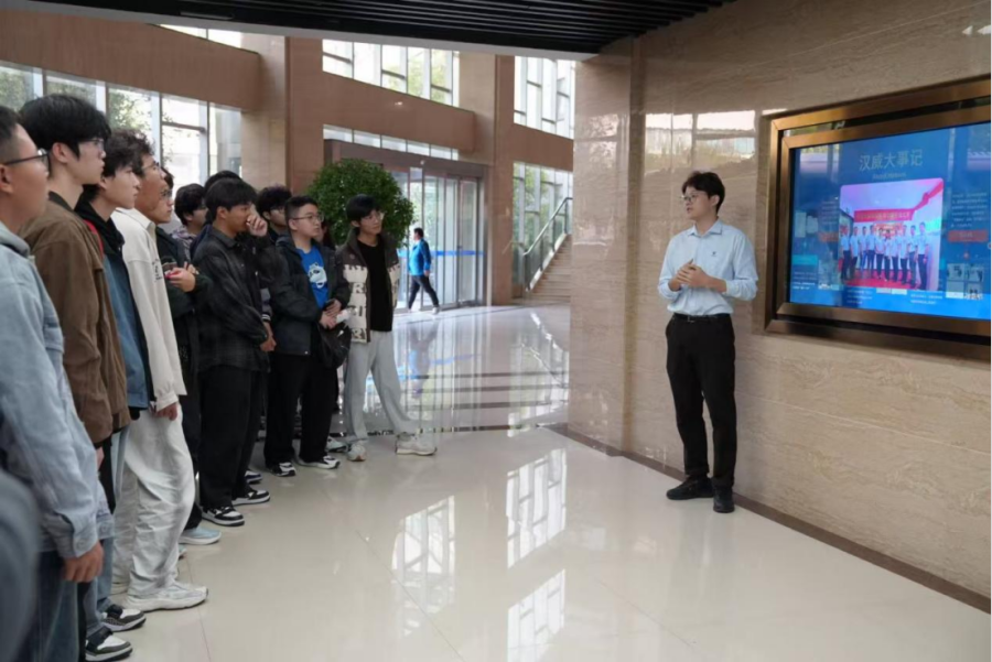 在园区工作人员的引导下,大学生们参观了汉威科技展厅。展厅内,工作人员通过多媒体互动、实物展示等方式,生动介绍了汉威科技在传感器、物联网等领域的创新成果与发展历程。从工业安全监测系统到智慧燃气解决方案,从环境监测设备到可穿戴医疗传感器,一系列代表行业前沿技术的创新产品,引得师生们频频驻足。学生们认真聆听讲解,不时提出问题,与工作人员展开深入交流,现场学习氛围浓厚。