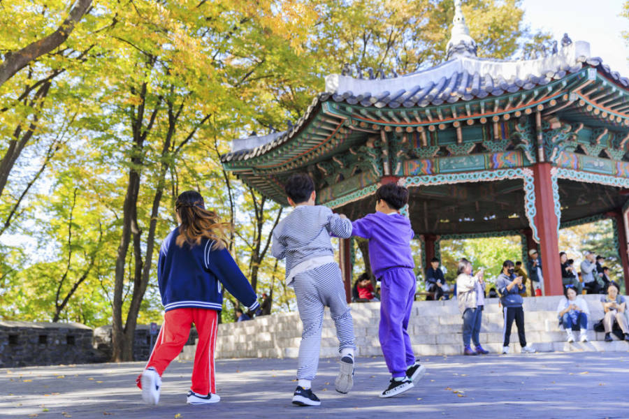 2024年10月20日,儿童在韩国首尔南山公园内玩耍。新华社发(朴晋泽摄)