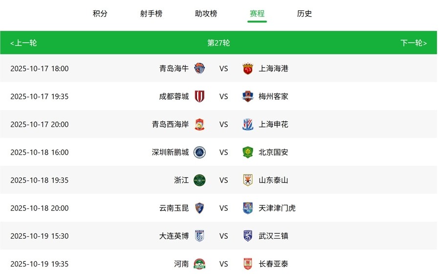 中超第27轮赛程,18日、19日的比赛,央视五套转播苏超,中超放在其余频道直播。