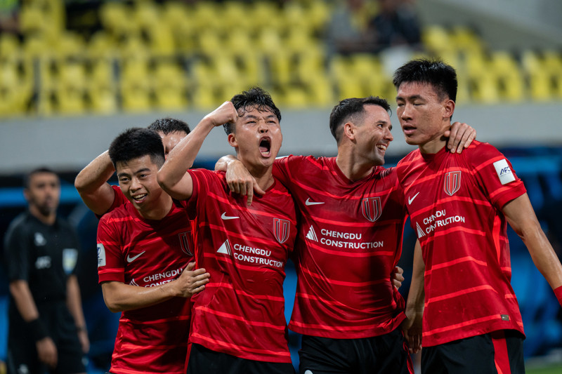 9月30日,成都蓉城队球员在比赛中庆祝进球。当日,在亚冠精英联赛东亚区第二轮比赛中,成都蓉城队主场1比0战胜韩国江原FC队。 新华社记者 薛晨 摄