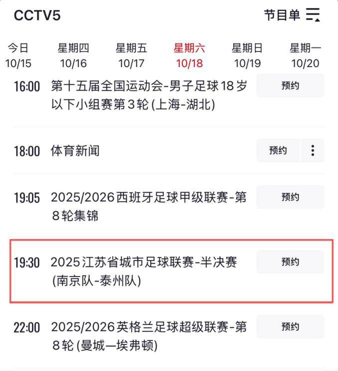 央视五套在18日、19日黄金时段选择直播“苏超”。