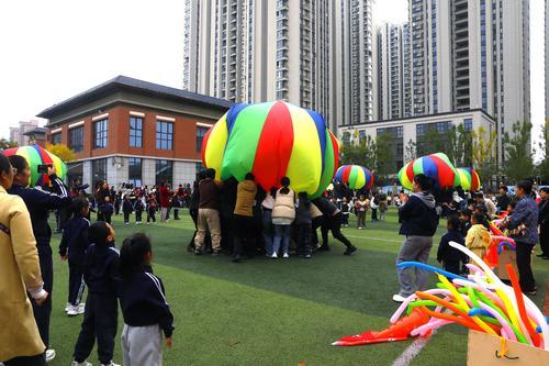 10月19日上午,郑州市实验幼儿园惠济园区操场上彩旗招展,彩色气球随风摇曳,400余名幼儿和家长以饱满姿态参与这场以“大手牵小手,一起来运动”为主题的开园5周年庆典暨第六届亲子趣味运动会,清脆的笑声与激昂的音乐交织,为秋日校园注入满满活力。