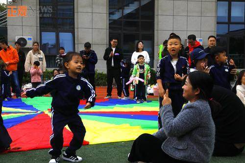 讲话结束后,亲子律动环节拉开帷幕。《噗龙宫之歌》的欢快节奏中,家长与孩子面对面模仿小动物动作;《问声好》旋律里,彼此点头微笑、击掌互动;《亲子乐园》的温馨曲调中,家长弯腰托举孩子旋转,现场满是温馨画面,亲子间的默契在律动中悄然升温。