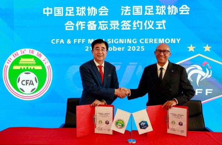10月21日上午,中国足球协会主席宋凯在北京会见了法国足协主席菲利普·迪亚洛一行。双方就加强中法两国足球合作进行了深入交流,并共同签署了《中国足球协会与法国足球协会合作备忘录》。此次签署标志着中法足球合作翻开崭新一页。