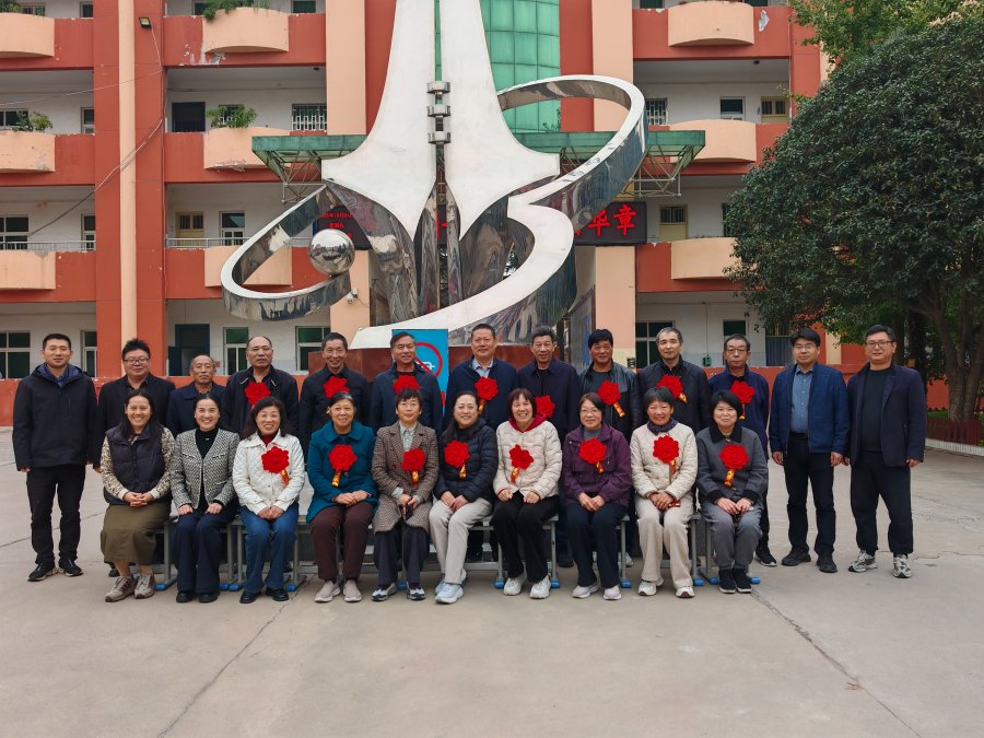 会后,学校为退休教师颁发纪念品并在钢雕前合影留念。镜头定格下了一张张熟悉而亲切的脸庞,也记录下了这一难忘的时刻。这是一场庄重而又有温度的座谈会,不仅让退休员工体会到了学校的关怀与温暖,也是对教育事业的礼赞,对优良教育精神的传承与弘扬。