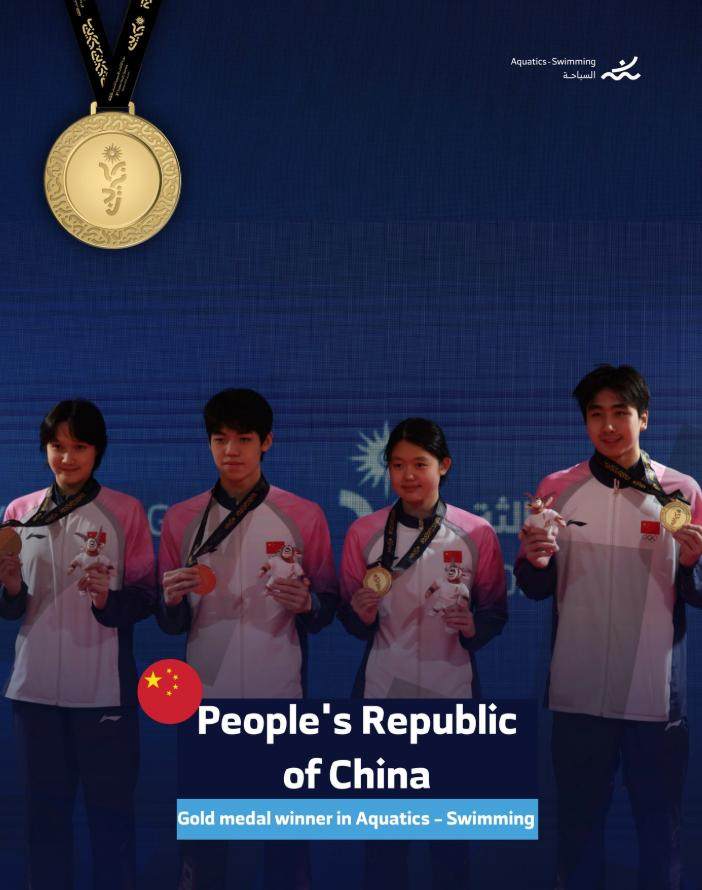 中国队在男女4X100米混合泳接力中夺金。 图片来自巴林亚青会官网