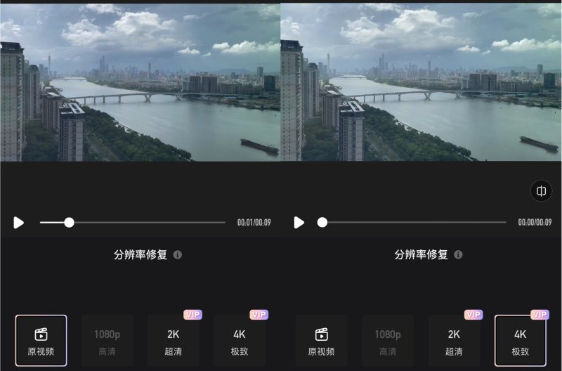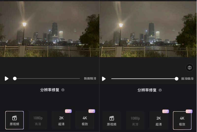 但从最终结果来看,就肉眼可见的效果,所谓的4K修复似乎并没有让视频更加清晰,反而更像是加了一层使画面更亮的滤镜。