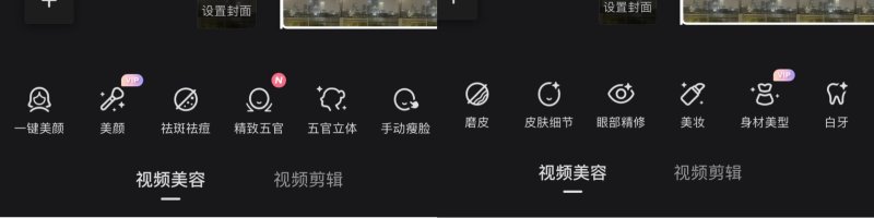 至于美图一贯的拿手好戏——美颜功能,在视频美容中的可选项不少。包括一键美颜、美颜、祛斑祛痘、精致五官、五官立体、手动瘦脸、磨皮、皮肤细节、眼部精修、美妆、身材美型、白牙等。