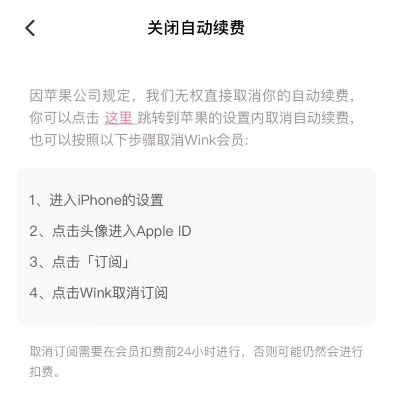 不过,该app也提示了随时取消的方法,并提示“取消订阅需要在会员扣费前24小时进行,否则可能仍然会进行扣费。”