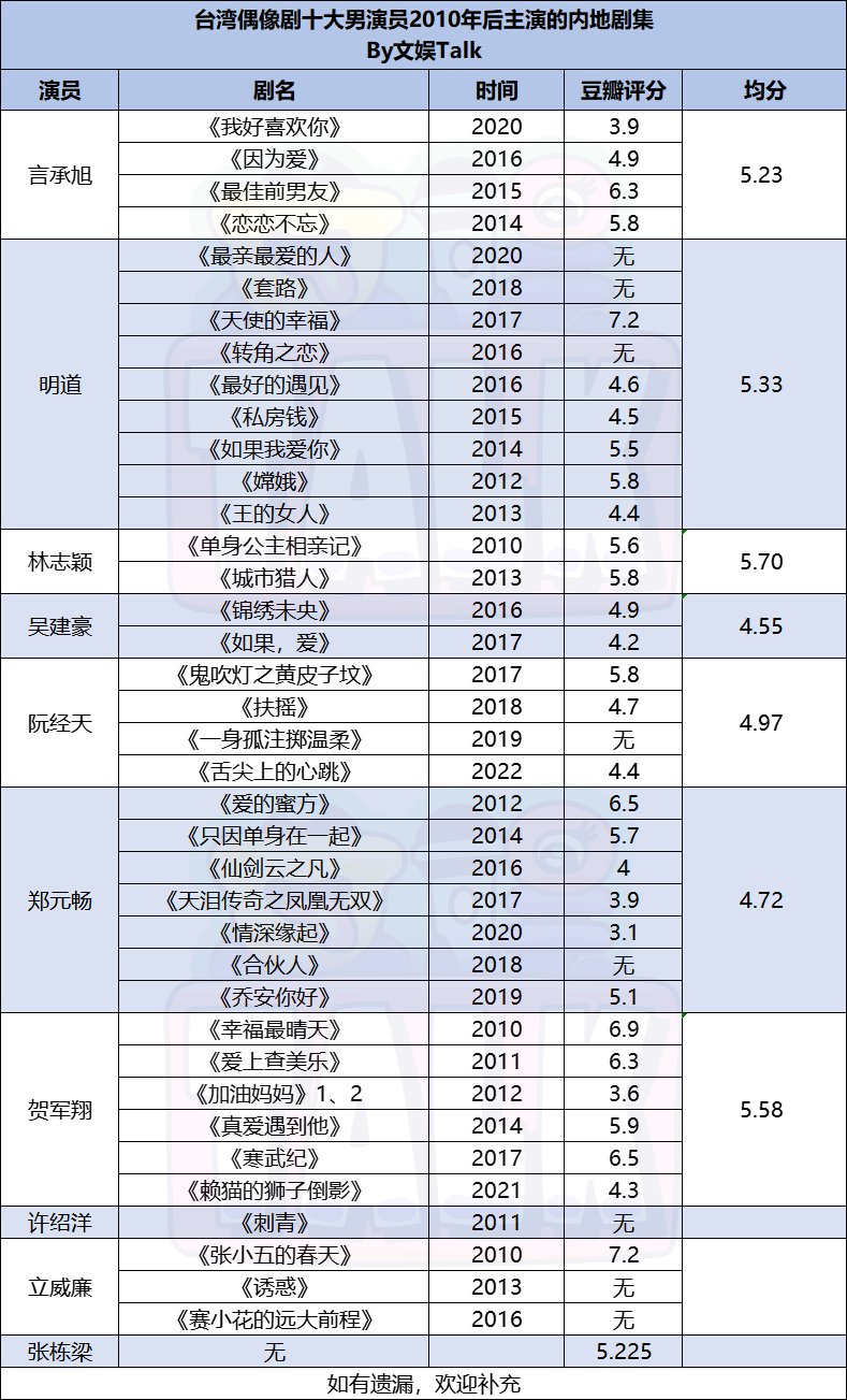 但从表格也可以看到,大部分人的大陆影视之路并不顺利,无论是播出成绩还是口碑评分,都再难回巅峰。