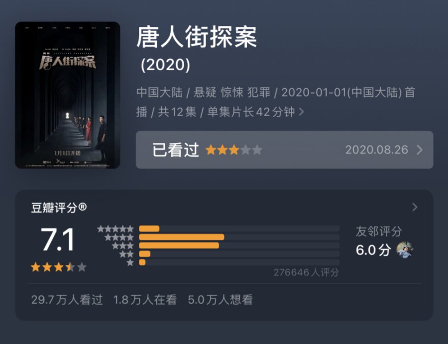 2020年在内地主演的网剧《唐人街探案》,是豆瓣评分7.1的口碑佳作,至今还在等第二季的朋友们有没有?