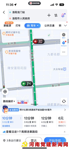 据悉,洛阳公安交警将基于信号控制的灯态数据输送给百度地图App,驾驶员发起驾车导航时,可实时查看前方路口红绿灯读秒,避免因大车遮挡带来等灯焦虑,以提前做好启停准备,避免急加速、急减速带来的安全隐患。百度地图在不少路段还能够实时推荐绿波车速,只要驾驶员按照导航建议的车速行驶,即可最大程度实现“一路绿灯”的畅行体验。