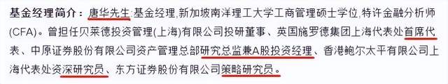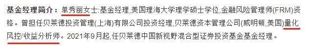 以“亏损王”贝莱德中国新视野混合A为例,该基金有两位基金经理,单秀丽和唐华。从他们的经历来看,虽然他们都有丰富的金融经验,也有海外硕士学历,但基金管理经验却略显不足,任职回报率分别为-22.6%和-31.8%。