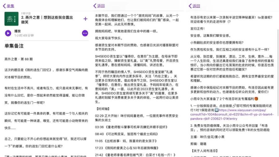 不少播客节目都有品牌赞助