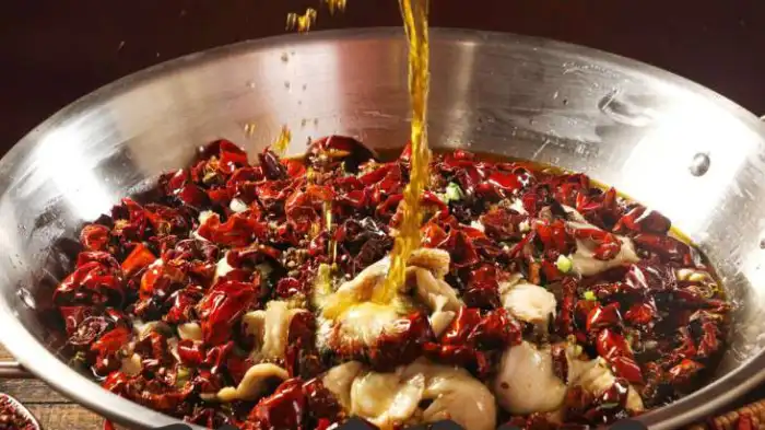 南菜园·重庆江湖菜袍哥辣子鸡选用四川一级梅花椒,麻香突出,回味悠长色泽红亮,无苦味;精选二荆条、七星椒、新一代配制色泽红亮椒香突出,辣而不柴。