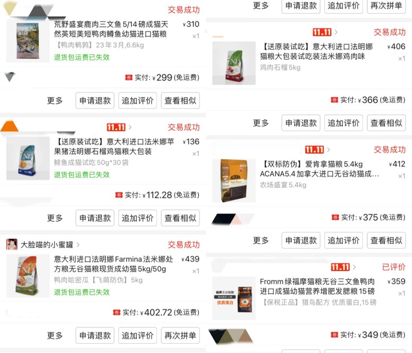 晨晓开始研究网购猫粮,“养猫养久了,就知道这些品牌猫粮的‘地板价’在哪,逛拼多多时,我常买的几个品牌,真的击穿了我心中的‘地板价’。百亿补贴已经补贴了一轮,又叠加上拼多多的省钱月卡,一包平时卖500多的猫粮,最低300多就买到过。”晨晓难掩自己“薅羊毛”的喜悦,感觉自己有“省钱牛逼症”。