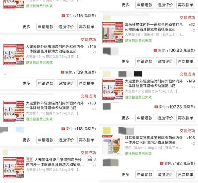 双11期间,晨晓在拼多多给两只猫又囤了猫粮和猫砂,“驱虫药也备了一些,现在给两只猫驱虫,一个月只需要花费70多元。猫粮和猫砂基本可以用到春节了,猫猫们可以过个暖冬了。”