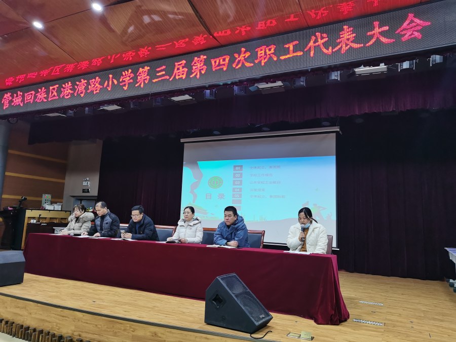 12月28日下午,郑州市管城回族区港湾路小学在学校志远厅召开了第三届第四次职工代表大会。大会由副校长宋书彦主持,校长张国举、党支部书记魏敏等领导班子及全校教职工代表参加了会议。